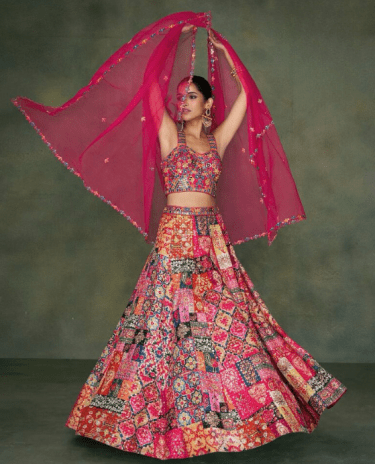 | Stiching | Blouse and Lehenga [+£45.00], Blouse stitching [+£40.00], Lehenga skirt stitching [+£20.00], No Stitch |