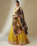 Product Details Lehenga Fabric: Georgette; Blouse Fabric: Georgette; Dupatta: Organza; Inner: Santoon with Cancan(tulle) layered Lehenga Work: Zari Sequins Embroidered; Blouse Work: Zari Sequins Embroidered; Dupatta Work: Digital Print Size details: Please use the above size chart or use the measurement size guide chart for made-to-measure orders. Made to measure, you can email us at info@monalisasarees.com with your order number or WhatsApp us at +44 7869143259 after making an order.Shipping time: We dispatch semi-stitched or unstitched lehenga within 48 hours of clearing payment. Lehenga delivery time: 4-5 working days (semi-stitched or unstitched). Lehenga stitched delivery time is 7–10 working days, as per the size chart.Color Variation