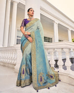 Product Details: Saree Color: Grey, Blue Occasion: Festive , Engagement , Bridesmaid , Reception , Party Embroidery: Zari, Cutdana Work Fabric: Crepe Jacquard Size details: Please use the above size chart for blouse stitching or use the measurement size guide chart for made-to-measure orders. Made to measure, you can email us at info@monalisasarees.com with your order number or WhatsApp us at +44 7869143259 after making an order. Shipping time: We dispatch sarees with unstitched blouses within 48 hours of clearing payment. Sarees with unstitched blouses have a delivery time of 4-5 working days, and sarees with stitched blouses have a delivery time of 7–10 working days, as per the size chart.Color Variation