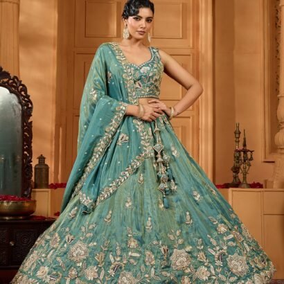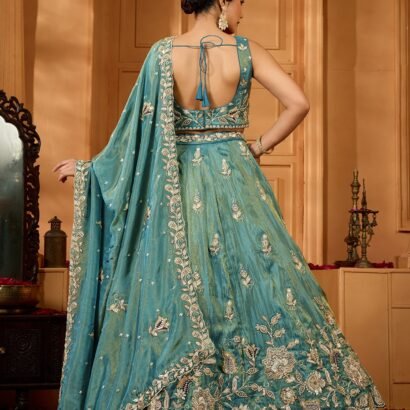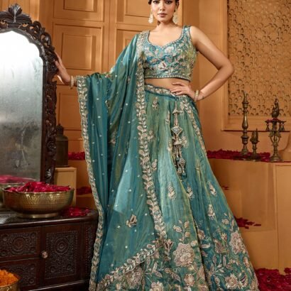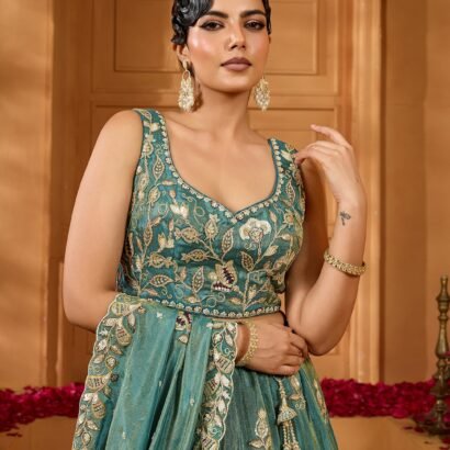 Green – Tissue Fabric Sequinse embroidery Semi-Stitched Lehenga & Unstitched Blouse With Dupatta