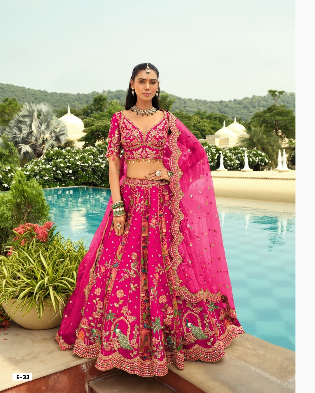 Hot Pink Floral Embroidered Bridal Lehenga with Embroidered Bridal Lehenga thread work lehenga set