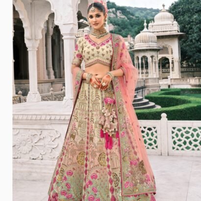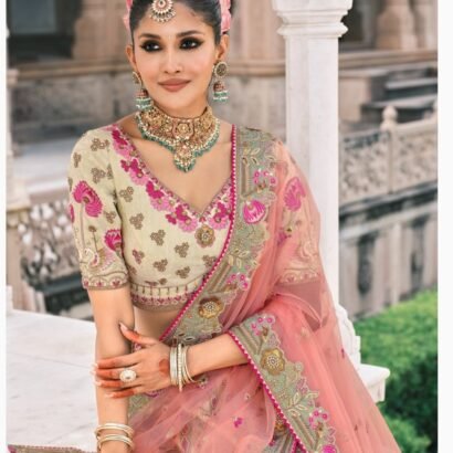 Ivory & Rose Pink Bridal Lehenga with Embroidered Bridal Lehenga thread work lehenga set