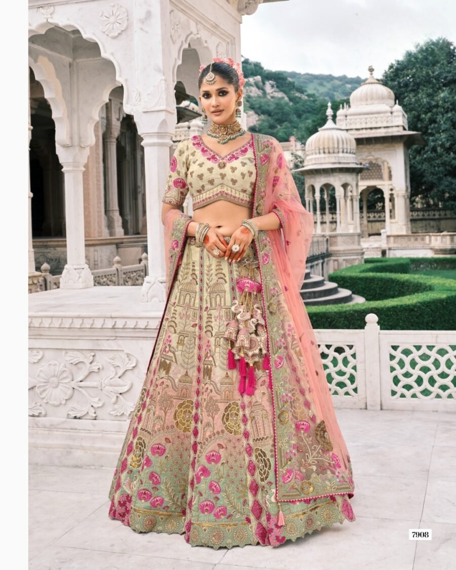 Ivory & Rose Pink Bridal Lehenga with Embroidered Bridal Lehenga thread work lehenga set