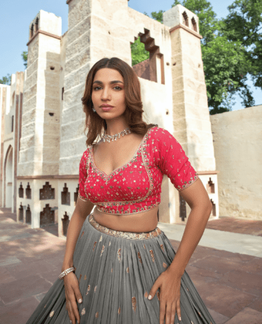 | Stiching | Blouse and Lehenga [+£45.00], Blouse stitching [+£40.00], Lehenga skirt stitching [+£20.00], No Stitch |