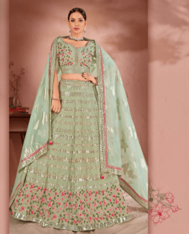 • Lehenga:- Made of premium quality Mauve Colour Pure Georgette Full Flaire Semi-Stitched Lehenga With Multi colour Sequins work Zarkan and Coding thread Work Embroidery. Has a cut work border on the hemline.