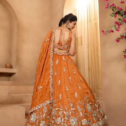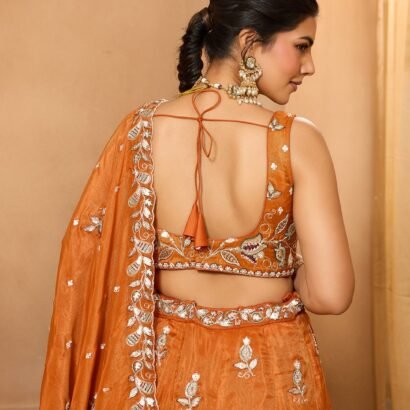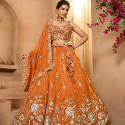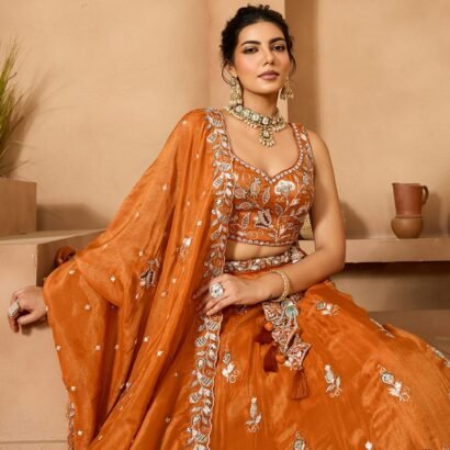 Orange – Tissue Fabric Sequinse embroidery Semi-Stitched Lehenga & Unstitched Blouse With Dupatta