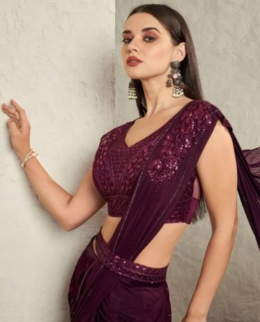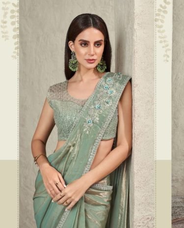 Saree : Premium Georgette Embellished With Beautiful , Zari , Embroidery,Sequins Work