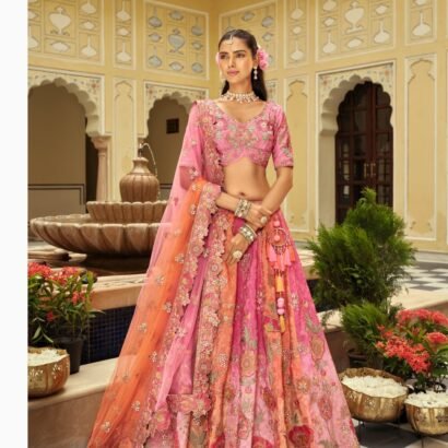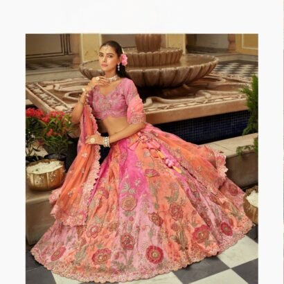 Salmon Pink Floral Embroidered Bridal Lehenga with Embroidered Bridal Lehenga thread work lehenga set