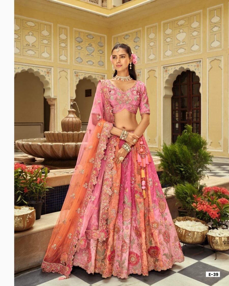 Salmon Pink Floral Embroidered Bridal Lehenga with Embroidered Bridal Lehenga thread work lehenga set