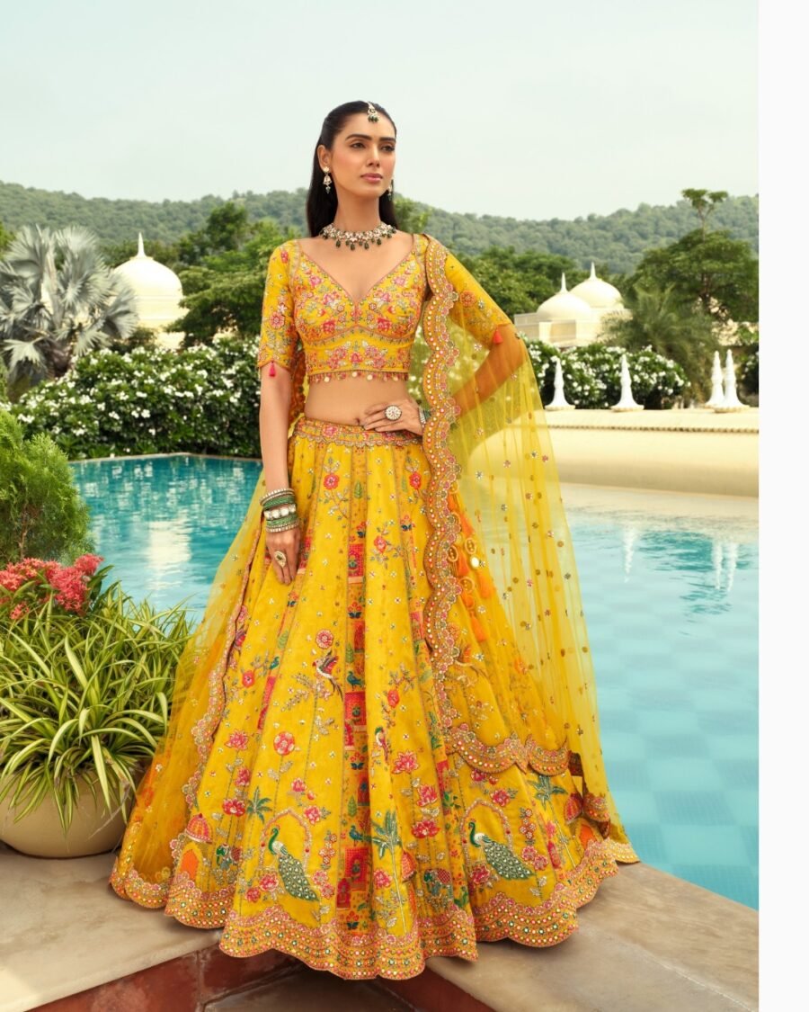 Yellow Floral Embroidered Bridal Lehenga with Embroidered Bridal Lehenga thread work lehenga set