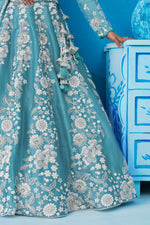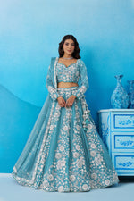 Aqua Blue Organza Designer Lehenga Choli for Wedding