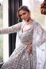 Silver Mirror Work Designer Lehenga Choli with Sequin Embellishment & Net Dupatta